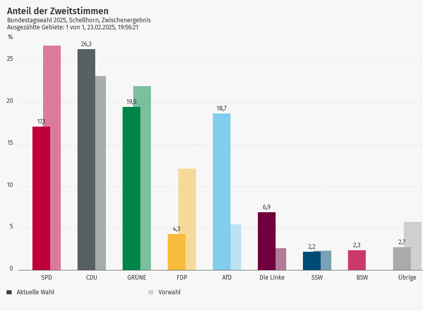 Von den im Amtsbezirk insgesamt abgegebenen 6.745 Stimmen waren 1.695 Briefwähler (25,1%)