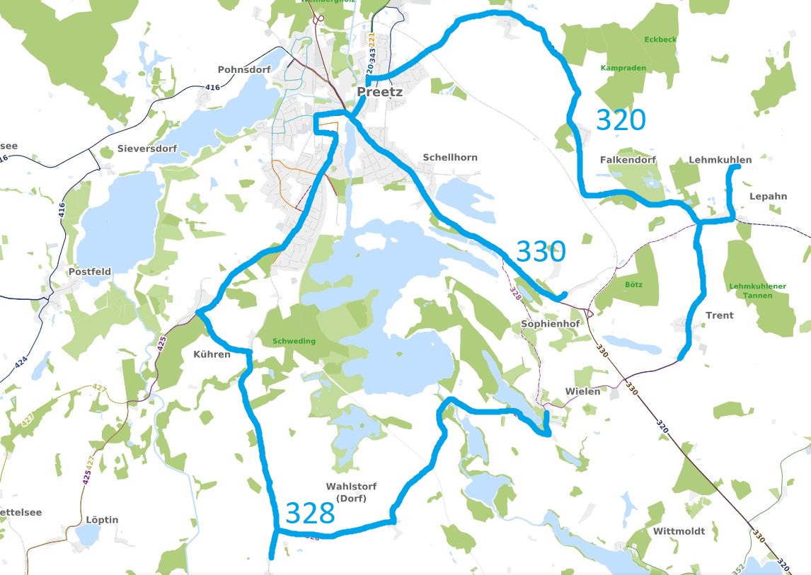 Anruf-Linien-Fahrten verkehren auf sechs Linien, die von Preetz