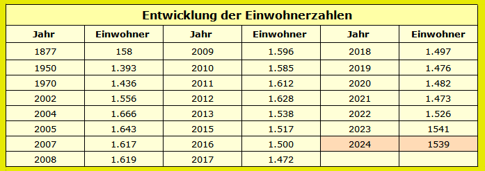 Die Einwohnerzahl schwankte in den letzten 10 Jahren zwischen etwa