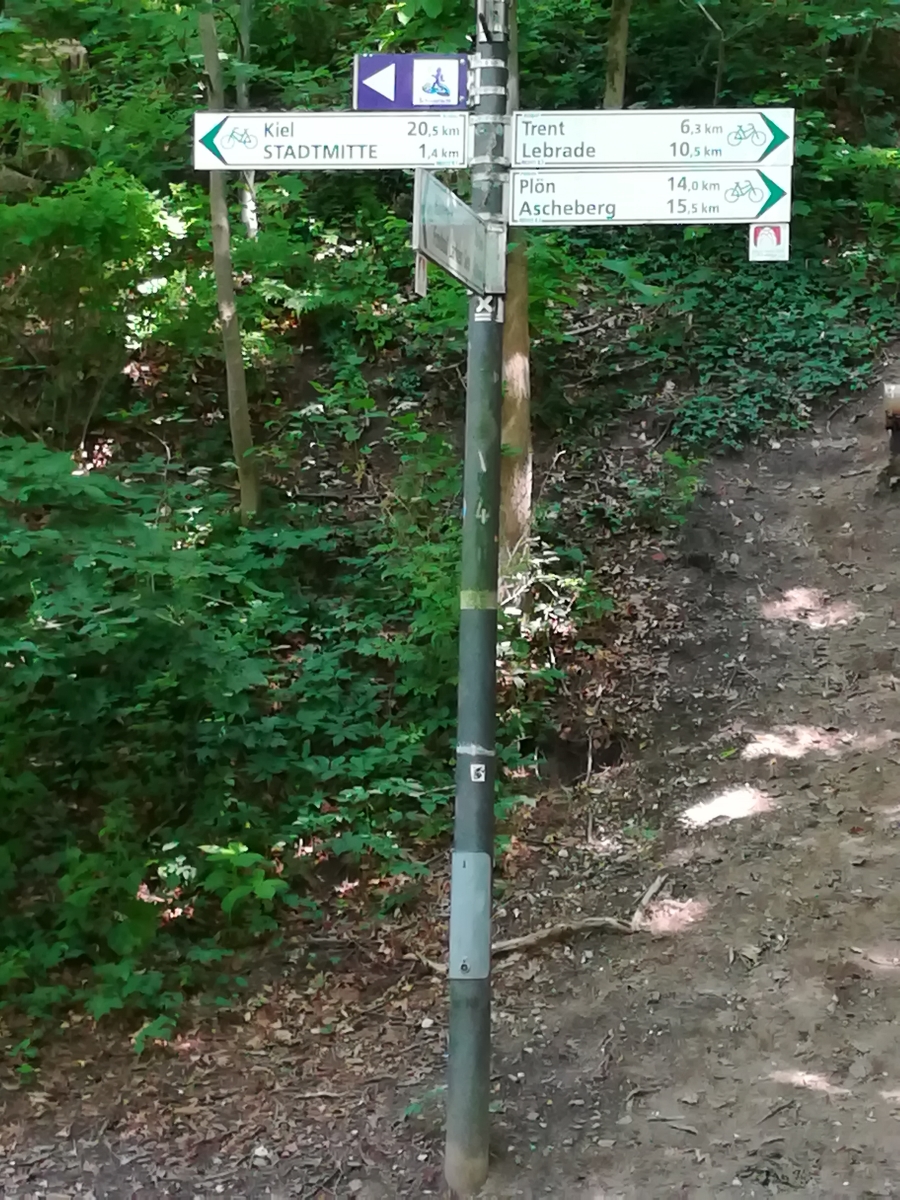 "Schwentine" (8,4 km) hinter welcher wir nach links Richtung Stadtmitte in den Uferweg